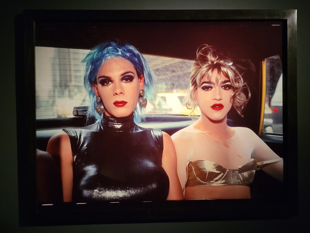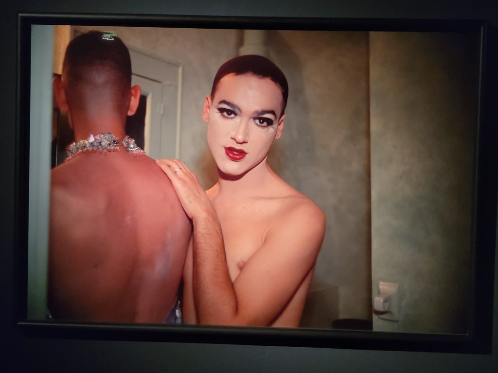 Dabei ist Nan Goldin bereits seit Ende der 70ger Jahren weltweit als Künstlerin berühmt. Damals schockierte und faszinierte sie die Gesellschaft mit Fotos aus der Nicht-Hetero-Community, insbesondere der Drag Queens in Boston. Fotos aus dieser Zeit sehen wir jetzt auch in der Ausstellung, nur wirken sie heute angesichts unserer medialen Überflutung mit ähnlichen Bildern aus der Subkultur nicht mehr schockierend.