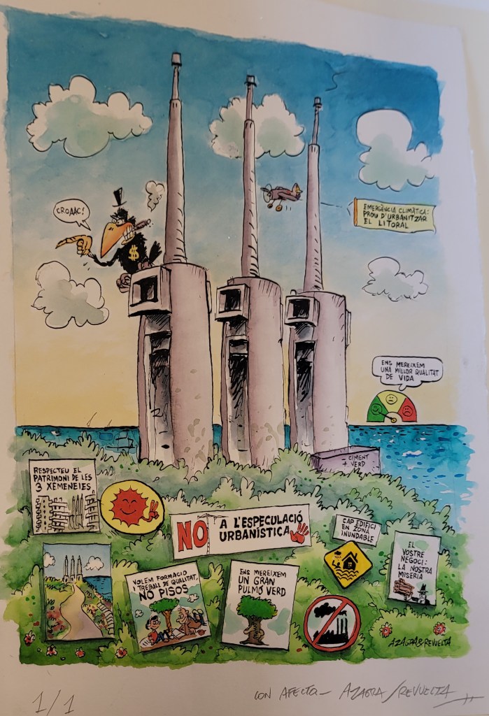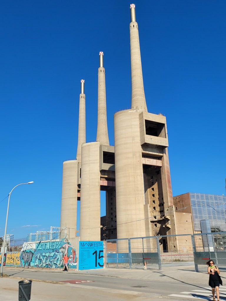 Das markanteste und größte Gebäude der Manifesta 15 ist das ehemalige Kraftwerk „Las Tres Chimeneas“ („Die drei Schornsteine“). Am Strand mitten in einer Industrie-Brache ragen die drei Türme wie Wolkenkratzer in den Himmel. Sie übertreffen sogar das Wahrzeichen der Stadt, die Sagrada Familia in Barcelonas City an Höhe.