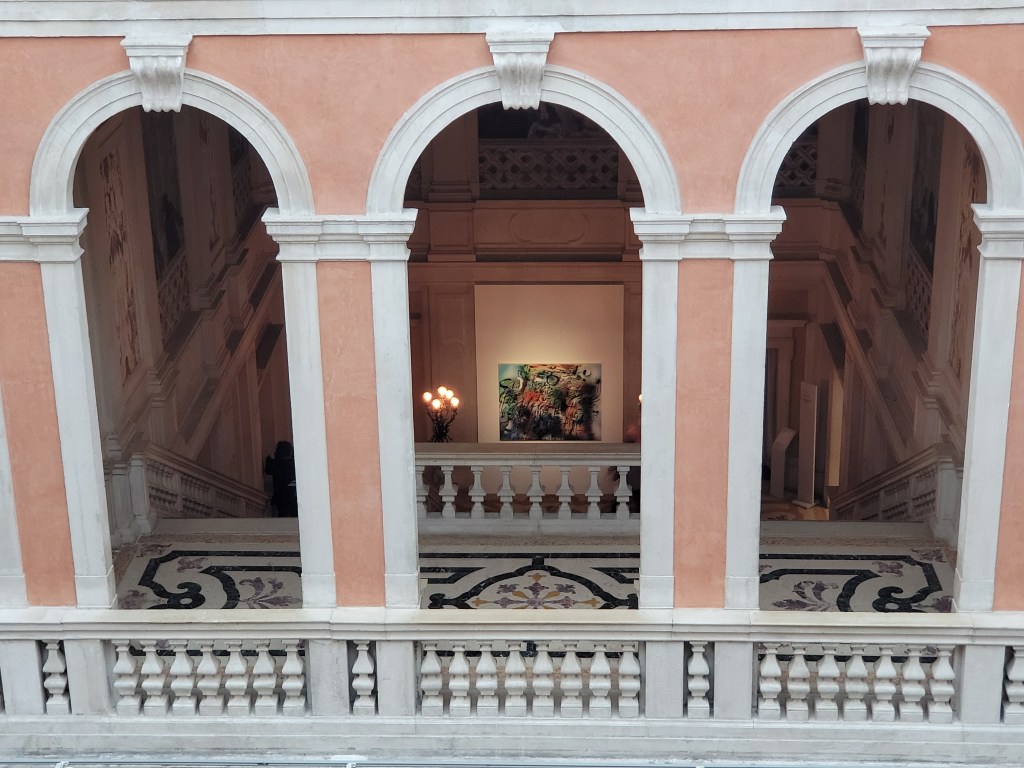 Im Palazzo Grassi zeigt die Pinault Collection Werke des in Kenia geborenen Malers Michael Armitage (geb. 1984), die inden letzten zehn Jahren entstanden sind. „Hier vermischen sich Bezüge zu Ostafrika mit Mythologie und westlicher Kunstgeschichte“. Wir können wirklich ausdrucksvolle Gemälde erwarten. Nur bleibt zu hoffen, dass nicht wie 2024 mit Julie Mehretu das Haus völlig überladen mit extrem ähnlichen Werken wirkt.