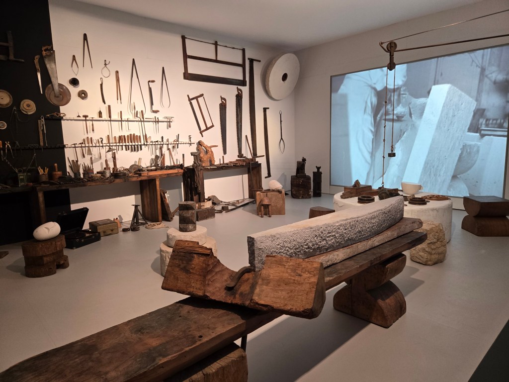 Ein Highlight der Ausstellung ist ein teilweiser Nachbau der Künstlerwerkstatt, in dem auch in Filmsequenzen der Meister bei der Arbeit „lebendig“ wird. Viele historische Dokumente und selbstgefertigte Fotos seiner Kunstwerke umrahmen den Werkstattbau in einem zentralen runden Pavillon. Sie sind mit einem guten Gespür  für die Darstellung des damaligen Zeitgeistes zusammengestellt und angeordnet.