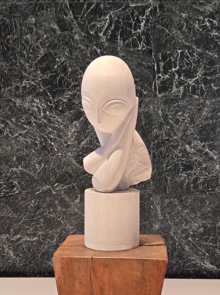 Brancusis Werken ist in all ihrer Abstaktion noch die reale Grundfigur anzusehen. Aus einer Ei-Form entwickelte er den ausdrucksstarken Kopf der „schlummernden Muse“. Doch der Künstler reduzierte die Gesichtszüge durch Schleifen und Polieren immer mehr, bis am Ende ein eindrucksvolles Konzentrat stiller Emotionalität entstand.