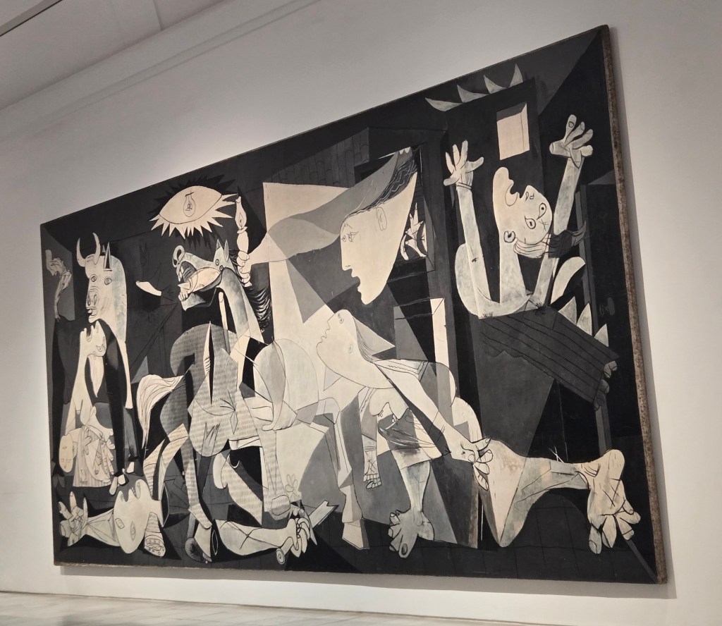 1980 bot sich dem jungen Kerry James Marshall die Chance eines Besuchs im New Yorker MOMA. Allerdings war die Reise nur „Historienmalern“ vorbehalten. Er malte deshalb Szenen, die im Aufbau an klassische Historienmalereien anknüpften. Nur agierten bereits damals schon keine weißen reichen Adligen-Familien, sondern stolze Menschen in tiefem Schwarz. Damit qualifizierte er sich für die Reise zu seinem Lieblingsbild: Picassos „Guernica“, was für ihn ein prägendes Erlebnis wurde.