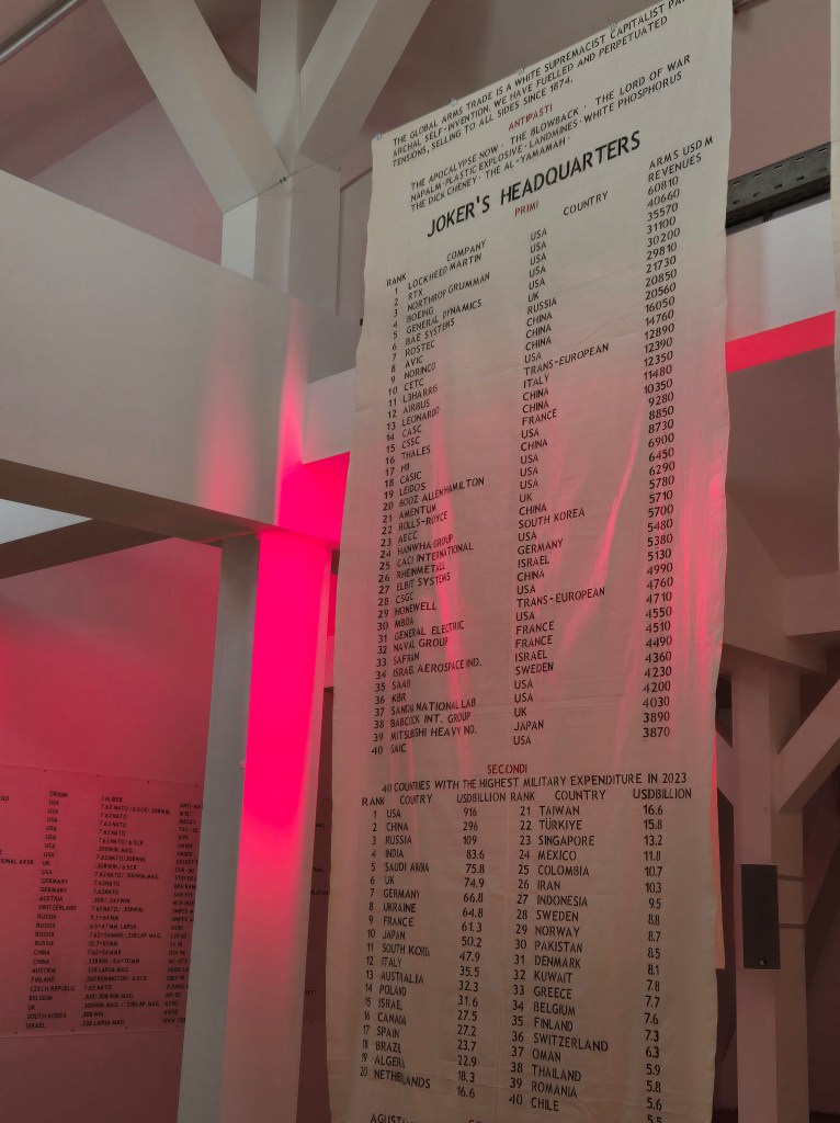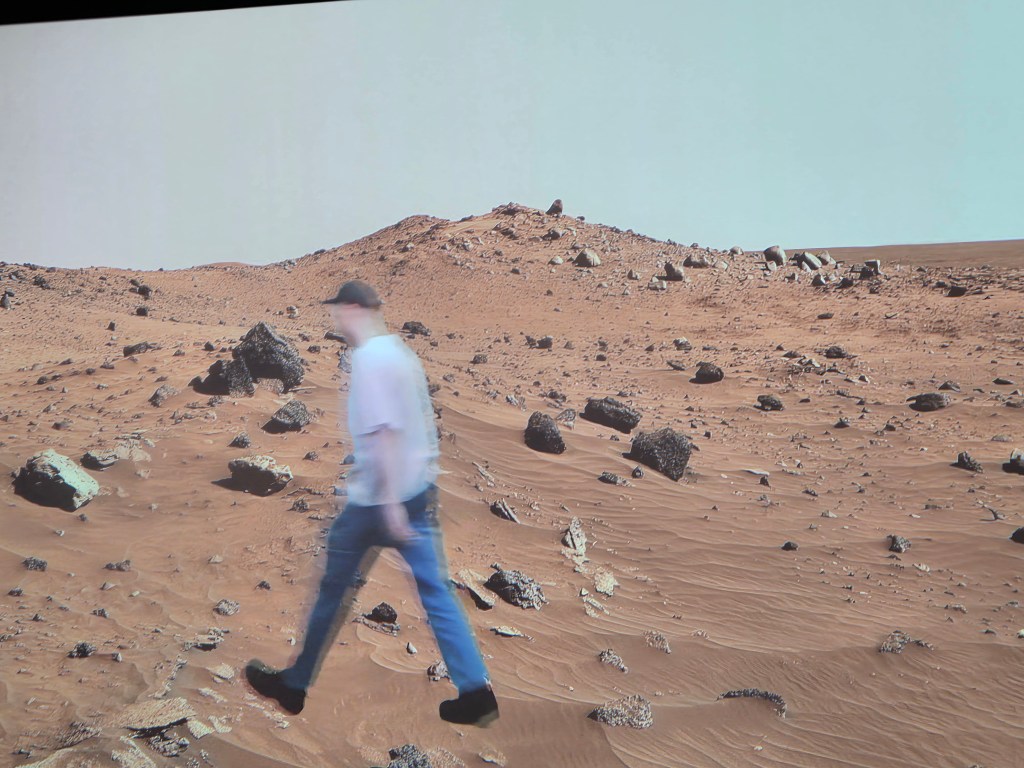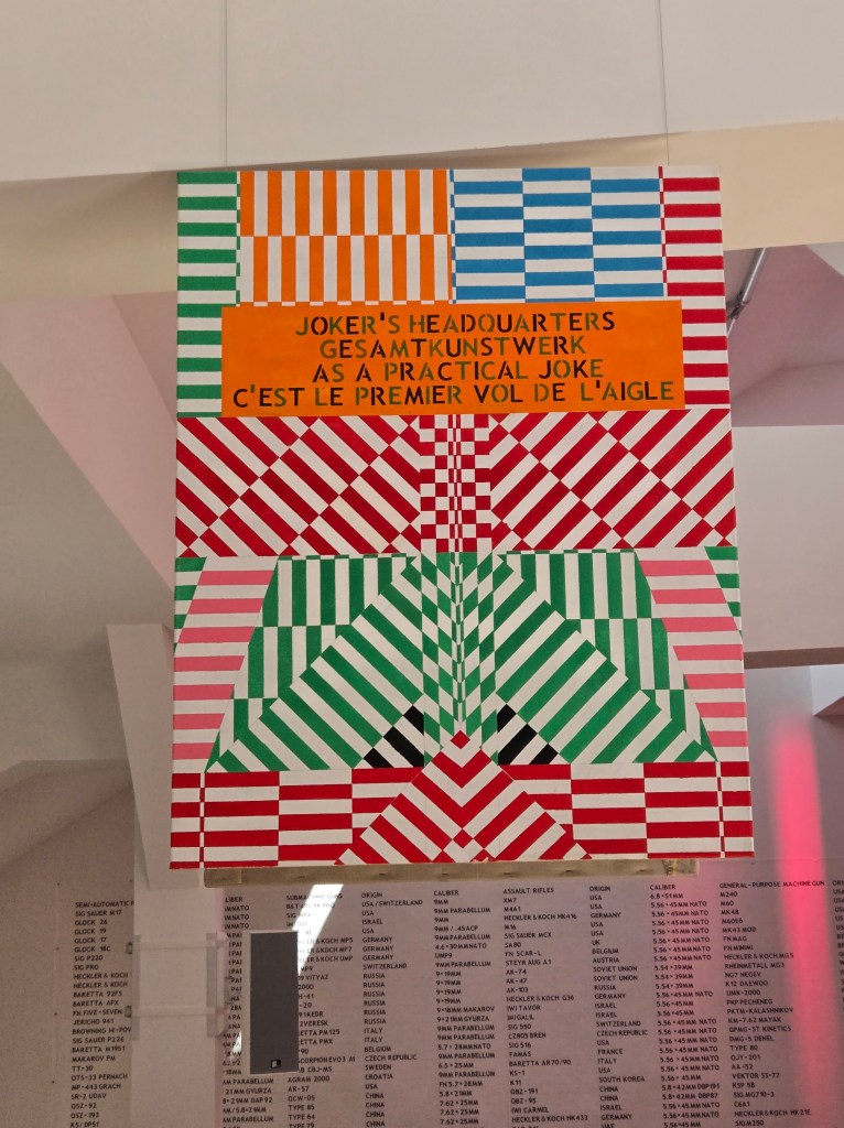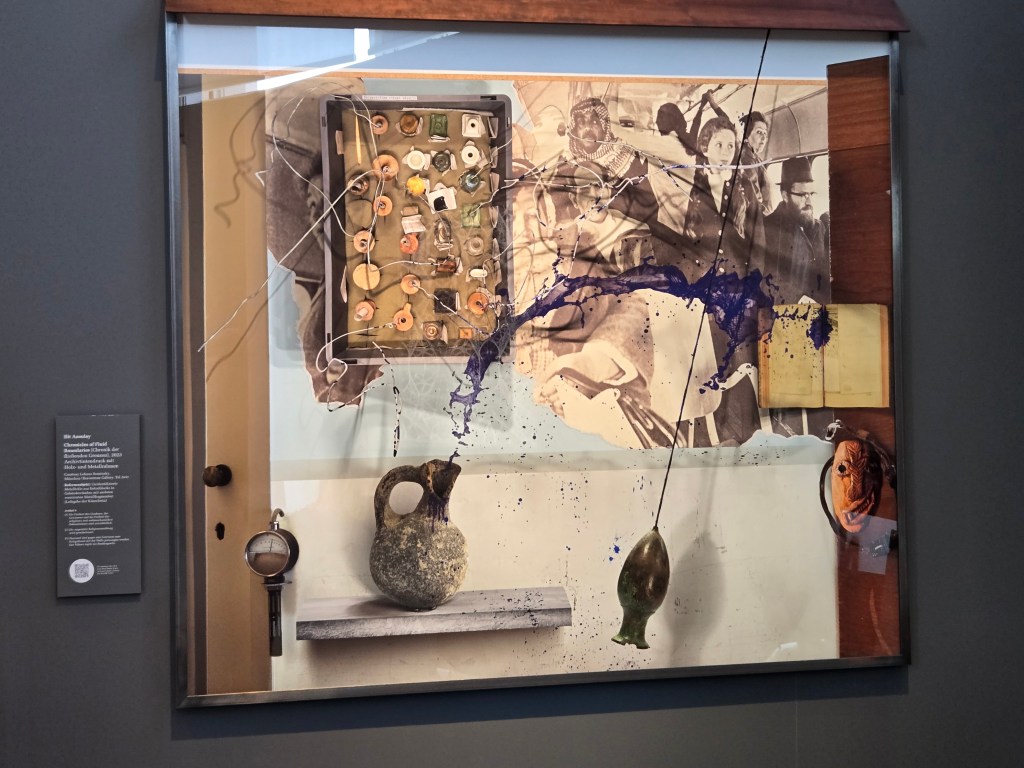 Auch wenn es auf den Fotos nur schwer nachvollziehbar ist, so löst das mosaikartige Video von Walid Raad trotzdem bei den Besuchenden eine große Faszination aus. Es handelt von Zerstörung und Wiederaufbau in ständiger Endlosschleife. Die zugrunde liegenden Aufnahmen stammen aus Beirut. Walid Raad wurde 1967 im Libanon geboren, war schon Teilnehmer der Documenta 13 (2012) und lebt jetzt in New York.