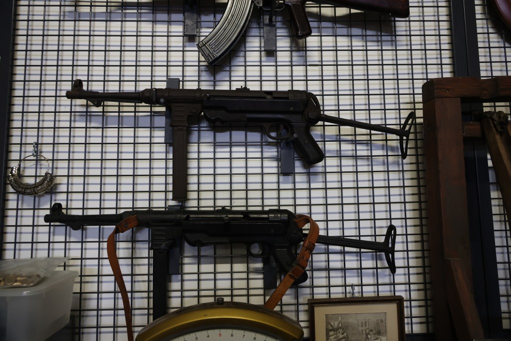 Das Gebäude von PRADA war auch zeitweise provisorisches Lazarett, was durch allerlei medizinische Geräte wie Rollstühle oder Pritschen thematisiert wird.