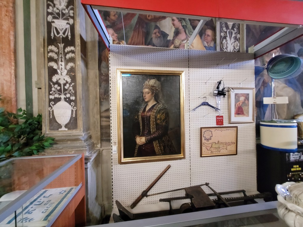 Zu einigen Besonderheiten sollte man besonders auf die Suche gehen. So hängt unscheinbar ein echter TIZIAN an einer Garderobe, der die frühere Kaiserin von Zypern zeigt, die an diesem Ort geboren wurde, jedoch in dem vorherigen gotischen Palast.