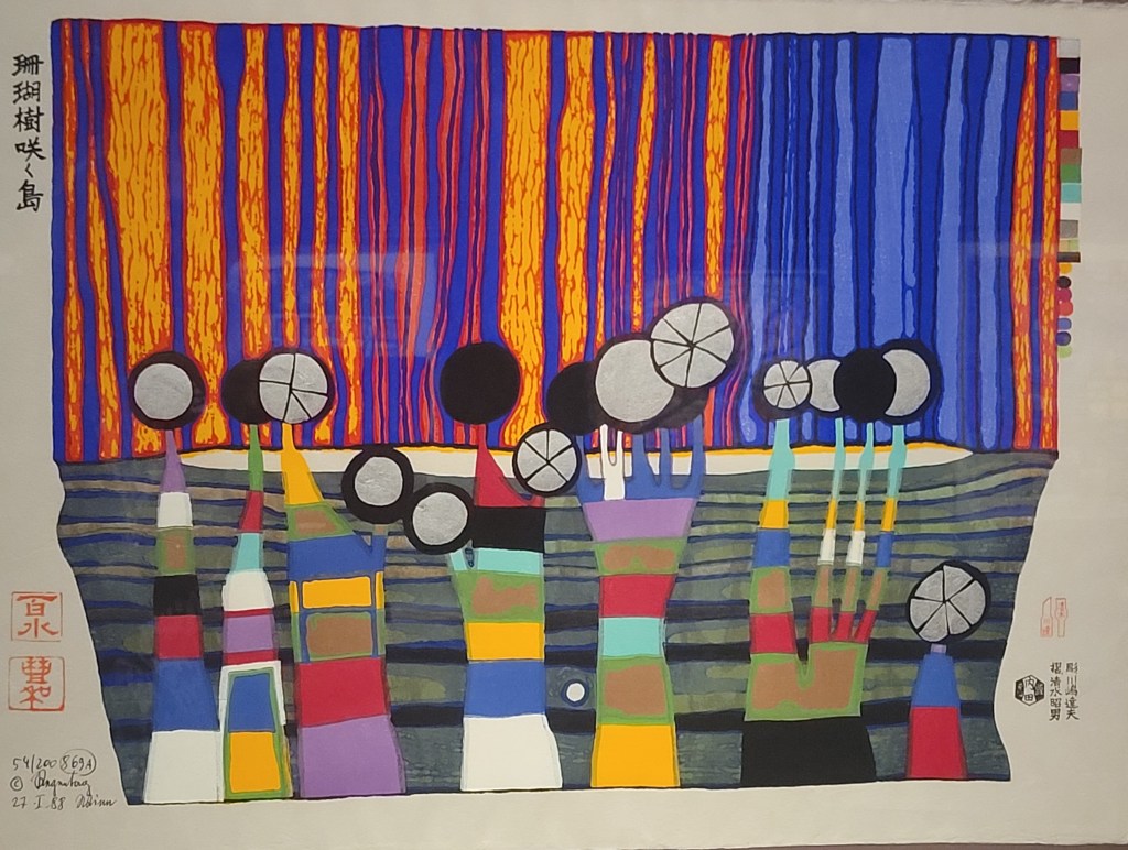 Die polnische Künstlerin Goshka Macuga begeisterte bei der Documenta 13 (2012) mit einem großen Foto-Wandteppich in der Rotunde des Friedricianums. In der Hamburger Ausstellung ist von ihr erneut ein Wandteppich zu sehen, diesmal als 3D-Bild, passende Brillen liegen bereit. Das Motiv sind seltsame Meereslebewesen, Tiefseetiere in Anzug mit Aktentasche. Sie hat das Motiv als Anspielung auf die Weltklimakonferenz 2021 in Glasgow angefertigt. Eine ironische Aufforderung, bei den unbekannten Wesen vielleicht nach Lösungen für die Klimakrise zu forschen.