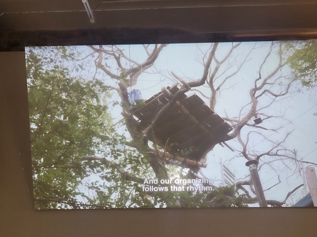 Dieses Web-Programm ermöglicht es leider nicht, doch das Wort SURVIVAL ist im offiziellen Titel der Gruppenausstellung in den Hamburger Deichtorhallen tatsächlich bewusst durchgestrichen. Der Direktor Dirk Luckow und die Kuratoren Georg Diez und Nicolaus Schafhausen erzählen, dass sie bereits 2018 auf die Idee mit der Ausstellung rund um die Überlebensfähigkeit der Menschheit gekommen seien. Damals wollten sie hierfür passende künstlerische Positionen über die wichtigen globalen Probleme sammeln, aber auch Lösungsideen aufzeigen. Zu jenem Zeitpukt war die drohende Klimakatastrophe das im wesentlichen einzige Problemfeld. Doch kurze Zeit später stand die Welt 2 Jahre ganz real fast still wegen der Pandemie. Im Anschluss schockierten bis heute die kriegerischen Angriffe Russlands auf die Ukraine und der unlösbare blutuge Konflikt in Gaza, so dass die Kuratoren die Idee, Lösungsvorschläge zeigen zu können aufgaben. Diese Resignation machen sie im Durchstreichen des Wortes Survival deutlich.