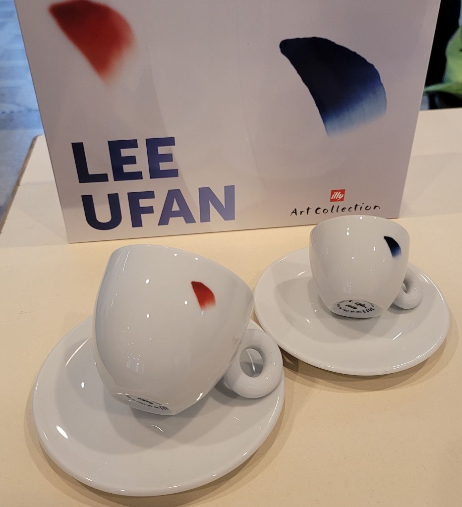 Lee Ufan muss ein weltberühmter Künstler sein, denn sonst hätte er nicht die Ehre bekommen, eine Espressotasse der Illy-Collection zu gestalten und sonst wären nicht so viele begeisterte AnhängerInnen aus Frankreich und Korea zur Eröffnung der neuen Retrospektive des Künstlers im Hamburger Bahnhof angereist.