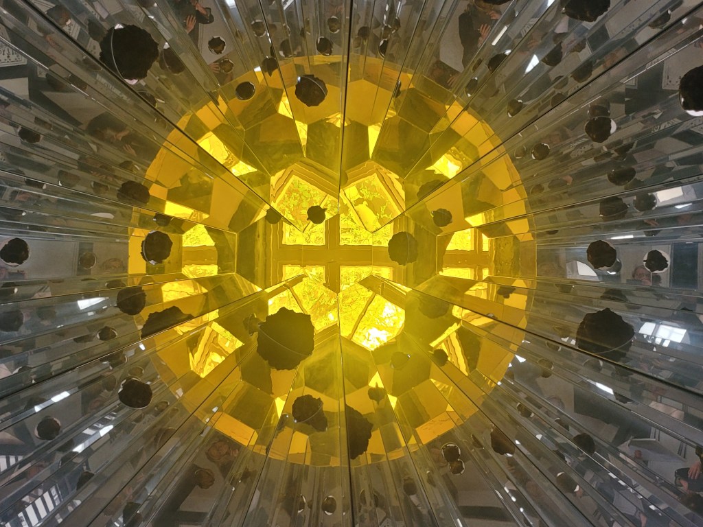 Doch zusätzlich sind auch ein typischer Bronze-Baum mit Stein von Giuseppe Penone und eine Blume von Yayoi Kusama zu sehen.