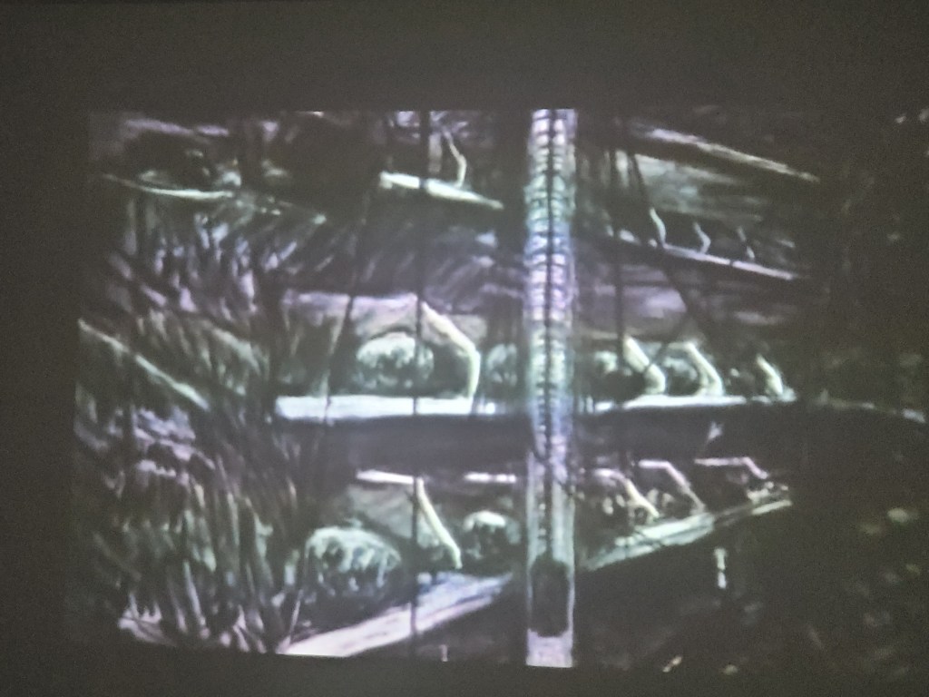 Die Künstlerin Aluainy Kaumakan stammt aus einer indigenen Bevölkerung Taiwans und präsentiert eine riesige flatternde feine textile Skulptur. Sie ist eine Hommage an die altertümlichen Möglichkeiten des Überlebens in einer schwierigen Umgebung.
