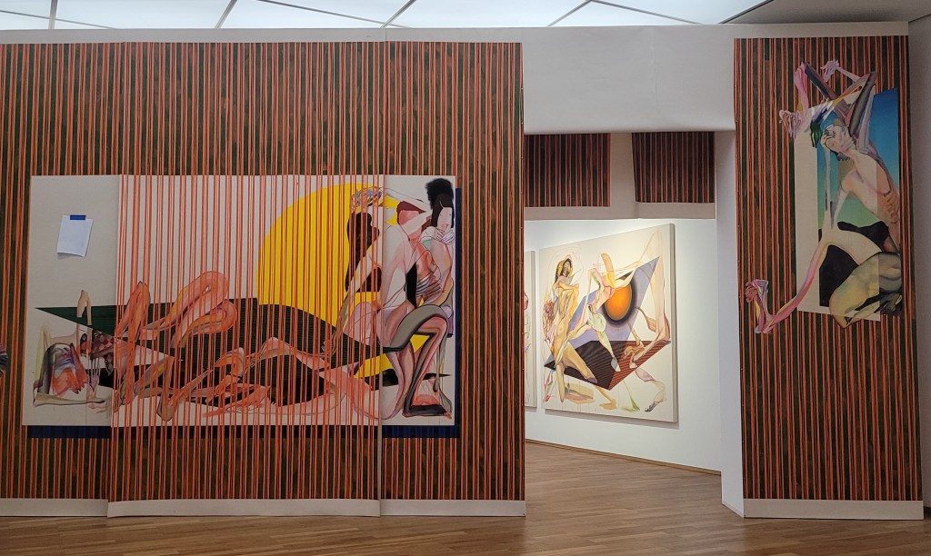 Die 38 jährigen Künstlerin aus Chicago ist in den USA bereits ein Star, eins ihrer Bilder wurde für 4,5 Millionen Dollar ersteigert. Äußerlich imponiert sie zwar mit einer recht weißen Hautfarbe, doch ihr Vater ist Afroamerikaner. Thematisch setzt sie sich daher mit der aufgezwungenen gesellschaftlichen Klassifizierung unserer Körper auseinander: mixed rassifiziert, gegendert oder queer. Dass dies zu Verwirrungen führt, besonders in ihren Bildern, ist nachvollziehbar, aber unglaublich anziehend.