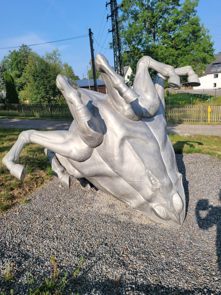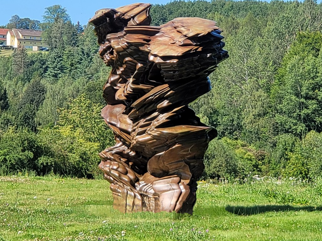 Der „Purple Path“ mit seinen 32 Kunstobjekten ist der eigentliche Schatz der Kulturhauptstadt 2025. Internationale Künstlerinnen und Künstler schufen ortsspezifische Skulpturen und Installationen nicht nur in Chemnitz, sondern auch in vielen kleinen Gemeinden um die Stadt herum. Sie bleiben und sollen den sonst vergessenen Orten eine spezifische aufwertende Identität geben. Leider ist es aufwändig, alle Werke aufzusuchen, denn oft trennen 20 bis 30 Minuten Fahrt mit dem Auto die Objekte voneinander. Doch die Schatzsuche lohnt sich! Zum Abschluss wird das letzte Projekt des Purple Path in Oelsnitz am 28.11.2025 eröffnet: eine Lichtskulptur von James Turrell.