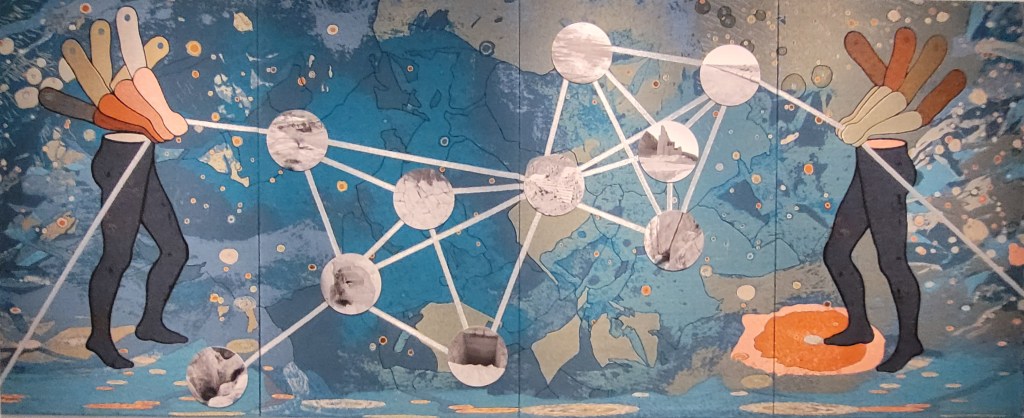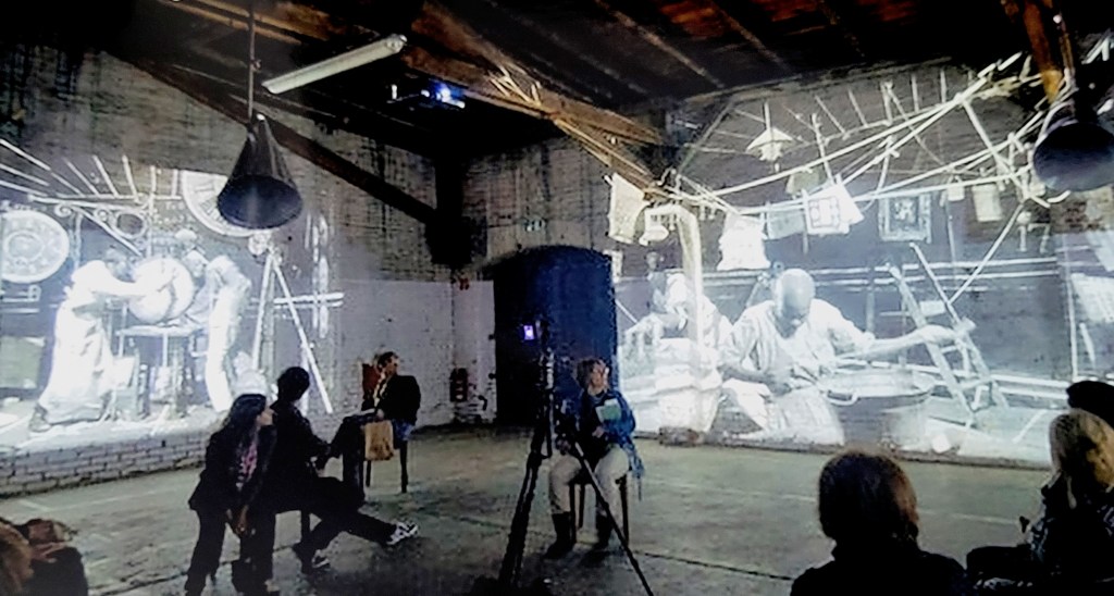 Die Ausstellung „Utopia, Recht auf Hoffnung“ versammelt künstlerische Entwürfe von Zukunft und Solidarität: sie fragt danach, welche Bilder von Hoffnung und politischem Möglichsein heute nötig sind und wie Kunst Räume für utopische Vorstellungskraft öffnet. Viele wunderschöne oder tiefsinnige Arbeiten finden sich zu einem vielfältigen Kunsterlebnis zusammen. Die KünstlerInnenliste ist lang und voller renomierter Namen, so dass es große Freude bereitet, viel Zeit in der Ausstellung zu verbringen. Die ist auch notwendig, weil die große Zahl hervorragender Filme auf keinen Fall ausgelassen werden sollte.