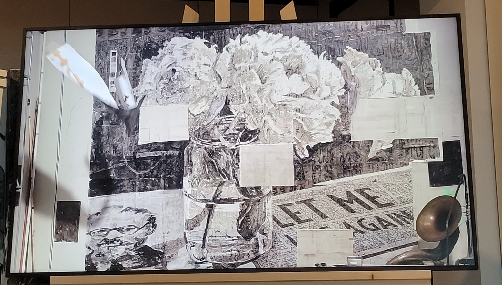 Die Präsentation der Preisträgerin des Guggenheim New York 2025 war wieder ein Beispiel für die Arbeit des Kuratoren-Teams Fellrath/Bardaouil, die so oft Künstlerinnen neu präsentieren, die uns überrascht aufmerken lassen, welche innovativen Tendenzen in der aktuellen Kunst existieren. Ayoung Kim zeigte mit allen erdenklichen technischen Finessen, wie eine utopische Idee künstlerisch umgesetzt werden kann. Ist unsere Welt nur eindimensional? Oder existieren in einem aufgelösten Raum-Zeit-Kontinuum parallele Welten? Und was passiert, wenn sie durchdringbar werden? Ein Training für unsere Vorstellungskraft über physikalische und soziale Denkschemata.