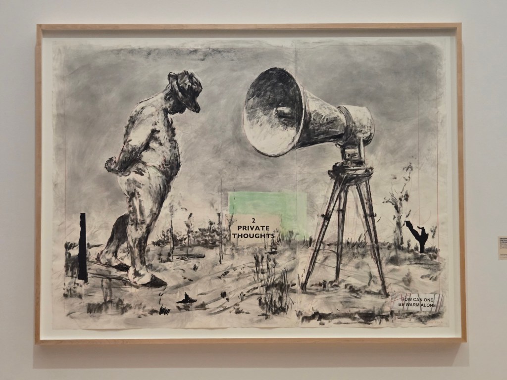 William Kentridge bleibt der große Meister der multimedialen Bild- und Bühnenpoesie: seine Kombination aus Zeichnung, Animation, Film und Performance setzt sich mit der Kolonialgeschichte Afrikas und Erinnerung an politische Gewalt, nicht nur in den Goldminen Südafrikas auseinander. Im Folkwang-Museum Essen sind riesige Zeichnungen und Videos mit viel Selbstironie zu entdecken. Multimediale Installationen wie das kleine Welttheater sind auch handwerkliche Kunststücke. In Berlin gab es mit der Aufführung „The Great Yes and the Great No“ zusätzlich ein Bühnenwerk des vielseitigen Künstlers zu sehen. Spätestens seit der dOCUMENTA(13) ist sein Werk wegweisend für zeitgenössische Kunst und inzwischen auch Plichtstoff im Katalog für den Oberstufenunterricht an NRW-Gymnasien.